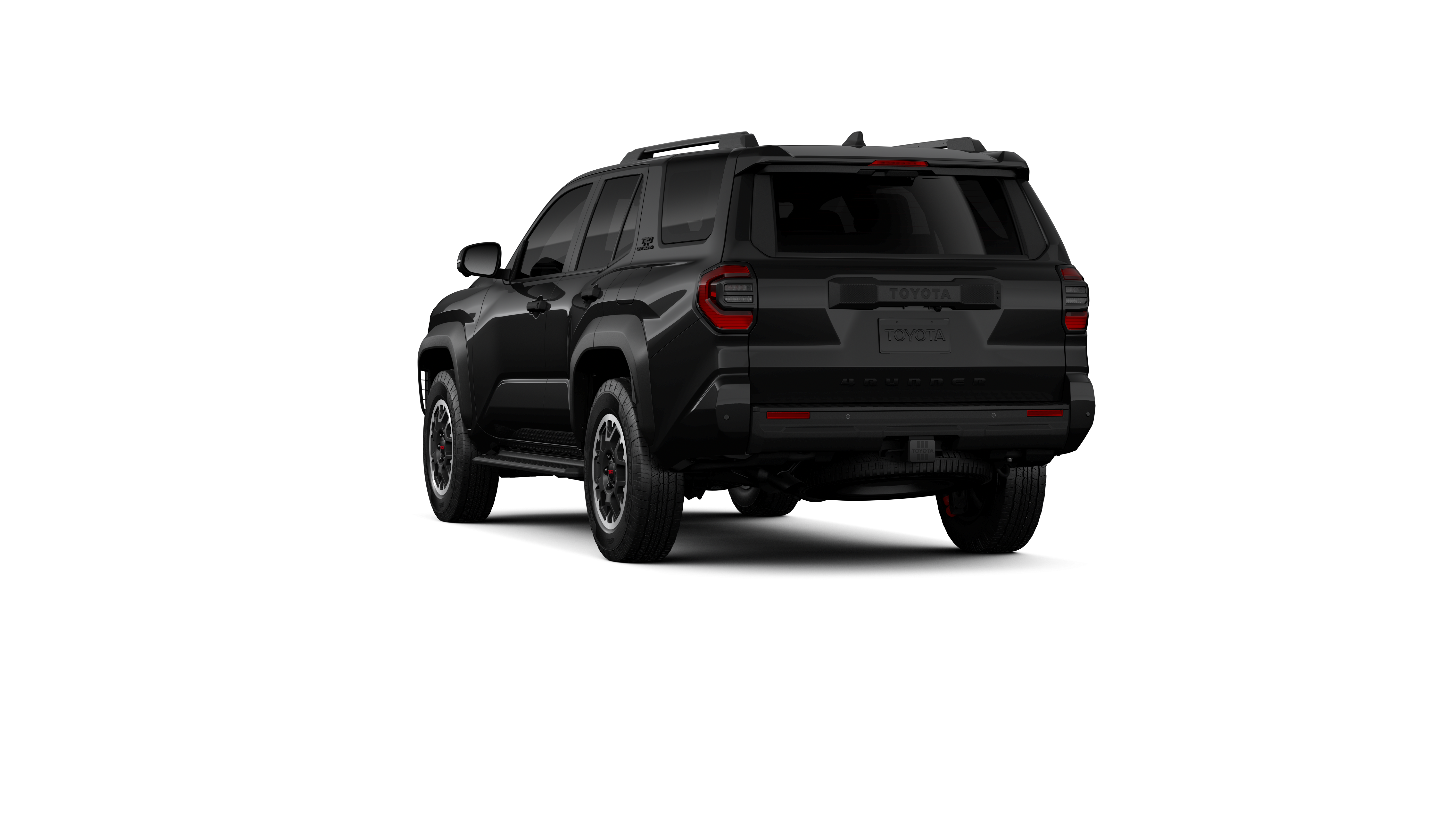 - Black honeycomb-style grille, mirror caps, door handles and overfenders; color-keyed rear spoiler; black "TRD OFF ROAD" and "4RUNNER" badges