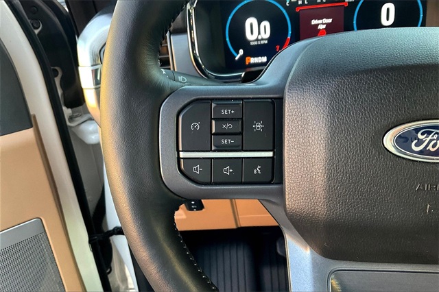 An ergonomic layout awaits in our Lariat cabin, which treats you to deluxe details like heated/ventilated leather power front seats, a leather-wrapped steering wheel, dual-zone automatic climate control, power-adjustable pedals, remote start, and a rear power window. A digital dashboard anchors the infotainment system with a 12-inch driver display and a 12-inch touchscreen to support voice recognition, WiFi compatibility, Android Auto®/Apple CarPlay®, Bluetooth®, and a premium sound system.