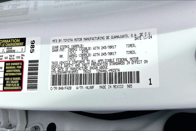 Our 2024 Toyota Tacoma SR Double Cab 4X4 in Ice Cap is designed to inspire daring adventures! Motivated by a TurboCharged 2.4 Liter i-Force 4 Cylinder offering 228hp connected to an 8 Speed Automatic transmission engineered for robust capability pulling heavy loads or pushing ahead with your busy days. This Four Wheel Drive truck also scores nearly 24mpg on the highway, and it features an automatic limited slip differential and 2-speed transfer case for top-notch traction. Our Tacoma's muscular good looks grab attention with a fierce grille, distinctive LED lighting, step bars, 17-inch wheels, and a rugged bed built to stand up to heavy use.